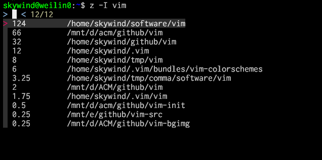 Linux上面有一个很方便的工具,可以通过z 加路径名字快速跳转过去。我们这里说的z jump就是类似的东西,支持Windows (cmder),linux和MacOS。 https://github.com/skywind3000/z.lua